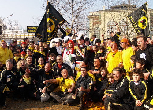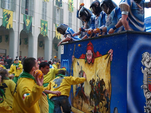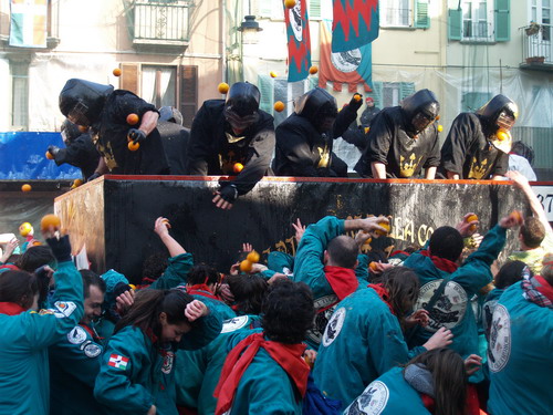 ed ecco alcune immagini della feroce battaglia delle arance svolta oggi ad Ivrea... tra i tanti, anche alcuni di nostra conoscenza