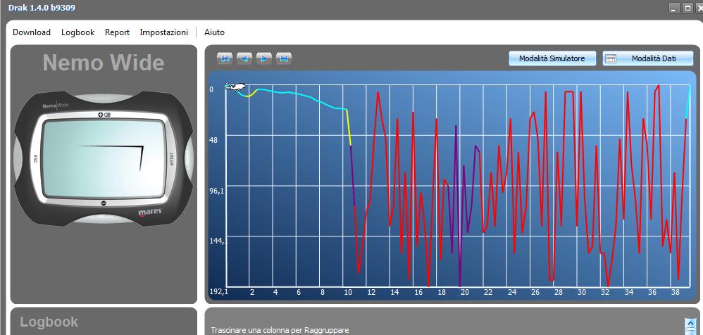 Domenica scorsa ho provato un nuovo gav con un nuovissimissimo sistema di controllo apportato sulle valvole di carico e scarico e con regolazione automatica dell'assetto, la particolarità di questo sistema stà che il contollo di assetto è tutto elettronico ed'è comandato da dei sensori che interagiscono con un microprocessore. Il sistema è ancora in fase di sperimantazione e qualcosina va ancora messa a punto. Allego il profilo dell'immersione così che anche voi potrete verificarne l'efficacia del nuovo sistema