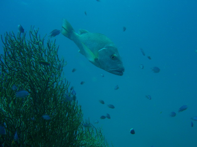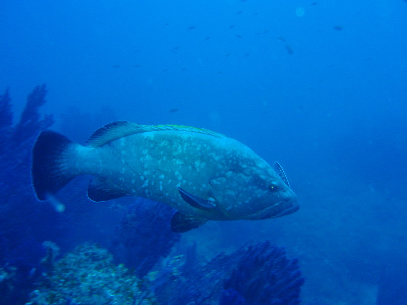 questa foto è di questa estate in sardegna secca del papa2 se fate caso nella bocca della cernia c'è la coda di una murena probabilmente era la sua colazione